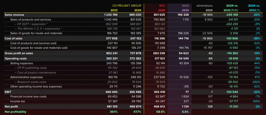 ➡️ Veo un resultado muy positivo para un año donde no ha tenido lanzamientos (en 2023 se lanzó ‘Phantom Liberty’)
