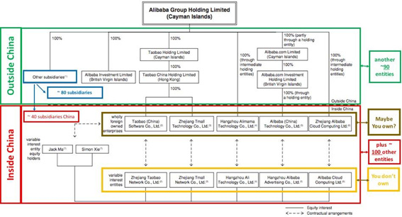 Uno de los ejemplos más famosos de estructuras VIE para inversión en una empresa china es la estructura empresarial de Alibaba: