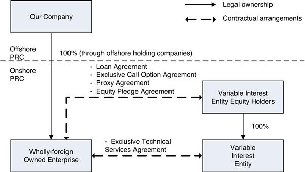 Desde el punto de vista jurídico, el modelo VIE consiste en esencia en controlar una empresa mediante acuerdos en lugar de mediante el control del equity.